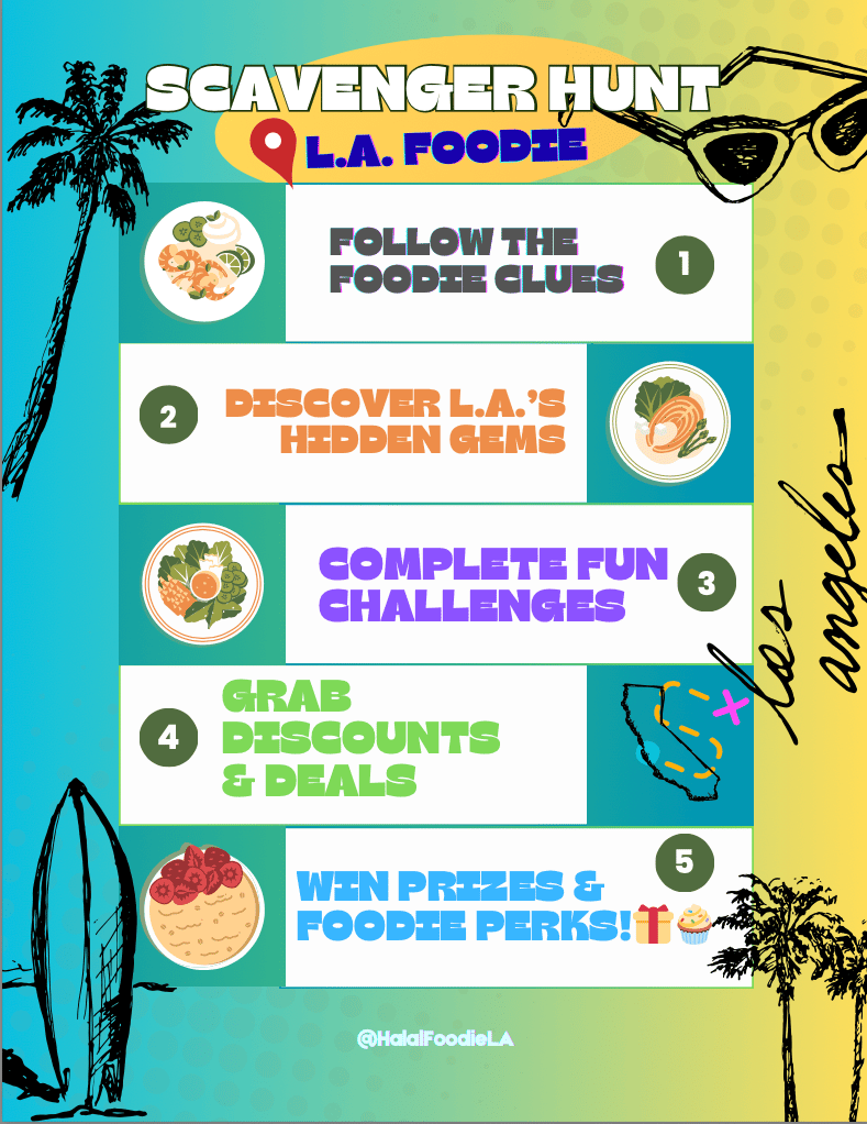Wanna try cuisines like these and SO MUCH MORE? Make sure to download L.A.’s first halal foodie hunt list! Where you can taste the city, which winning perks & prizes!